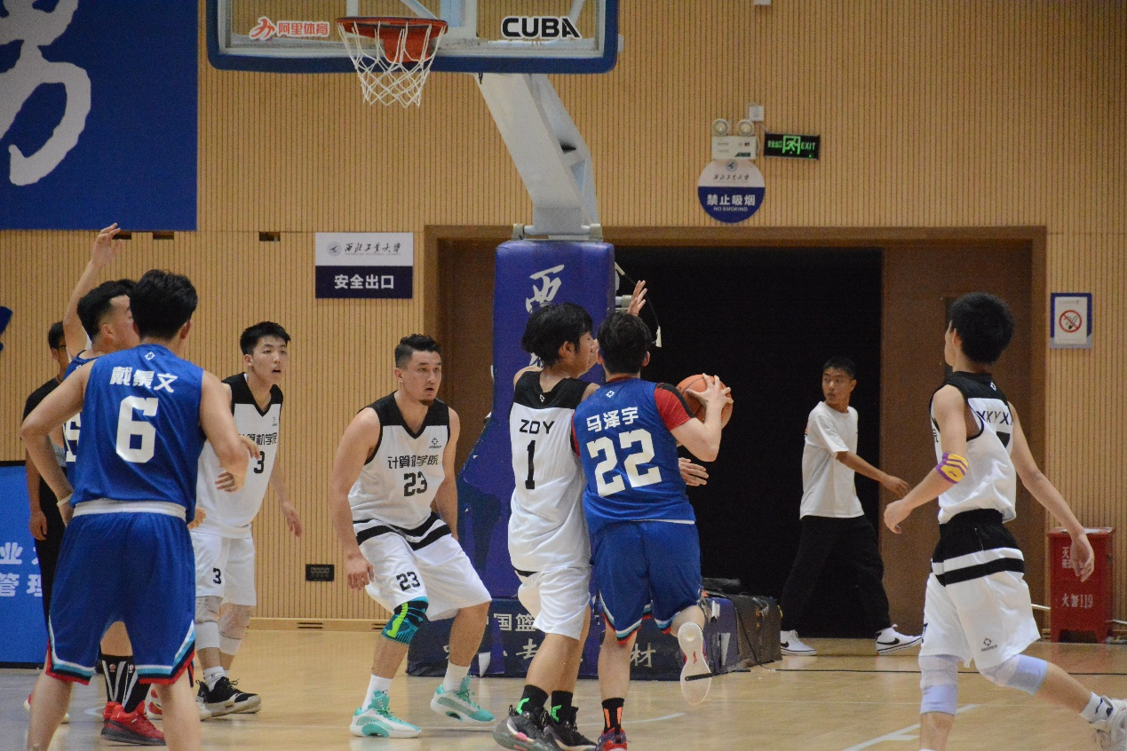 中场休息时,计算机学院党委副书记万海东亲自到场边给队员们打气助威,极大鼓舞了我院队员士气。艾力扎提对球队的战术进行了调整。此后,双方都加强了防守强度,场面十分胶着。计算机学院全体队员都拼尽全力,展示出自己的实力,将比分追近。最后一节,计算机学院在比分落后情况下,叶尔那尔决定单挑艾力扎提。面对艾力扎提的强力防守,首先打进两分,艾力扎提也做出回应,运球过半场后示意拉开单打叶尔那尔,同样两分打进,叶尔那尔在下一回合时没能打进,而艾力扎提则是远投三分,空心入网。最终计算机学院以39:45遗憾败北,终获第四。