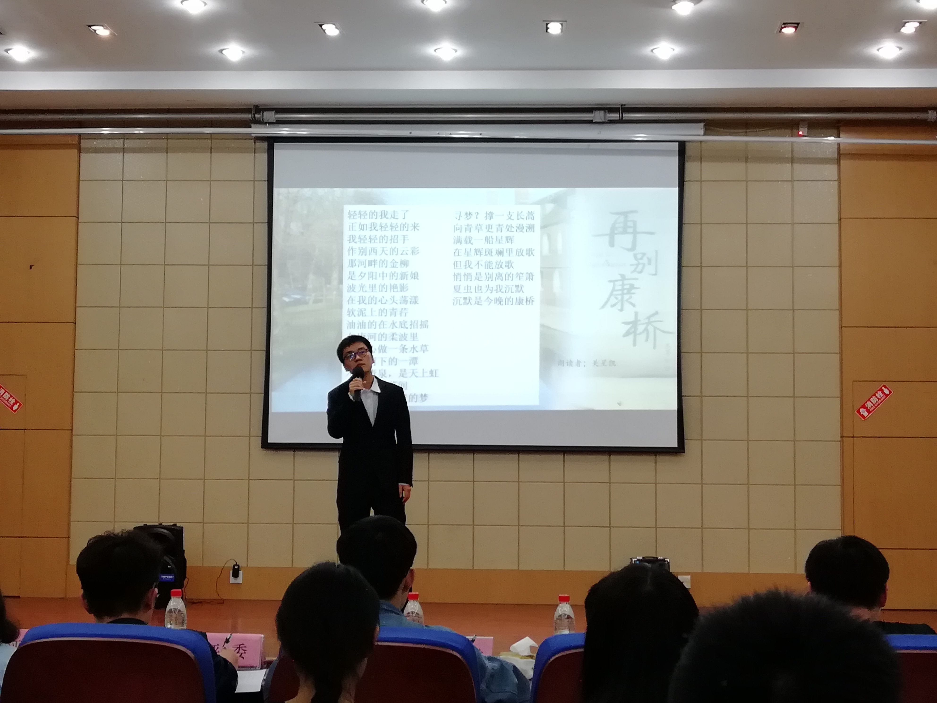 比赛期间,主持人还就相关诗歌、学校历史及党的十九大相关问题与同学们进行了积极热烈的互动。