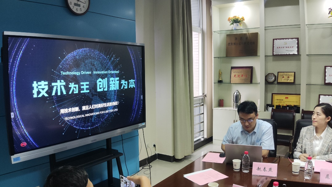首先,於志文院长代表学院对比亚迪股份有限公司韩冰总监一行的来访表示欢迎,并简单介绍了学院的学科布局和人才培养特色,强调学院注重系统发展并致力于培养具有家国情怀、追求卓越、引领未来的领军人才,希望有机会能够和比亚迪等产业界的兄弟单位在人才培养、科学研究以及科技成果转化深入合作。