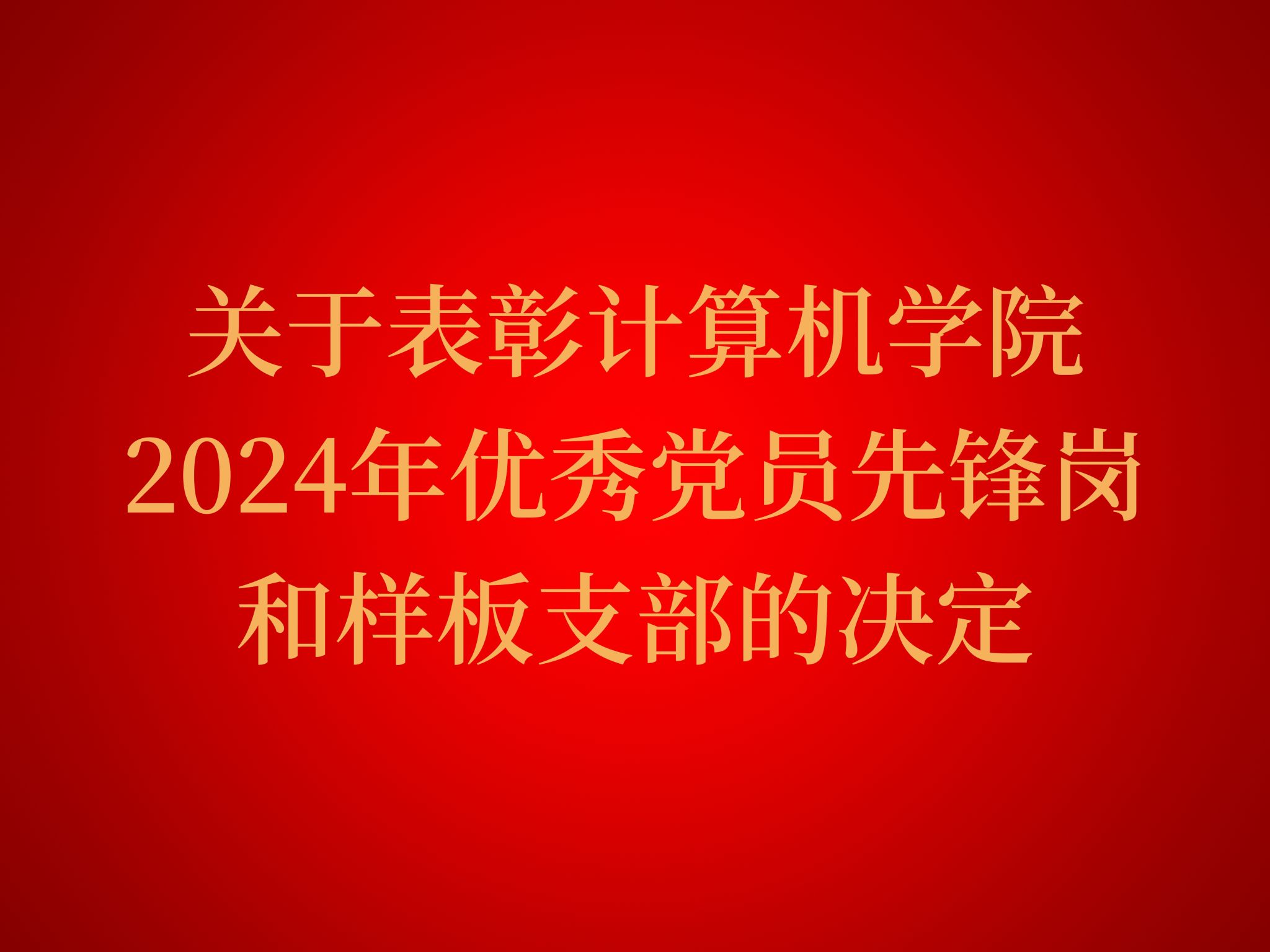 计算机学院2024年优秀党员先锋岗和 样板支部名单