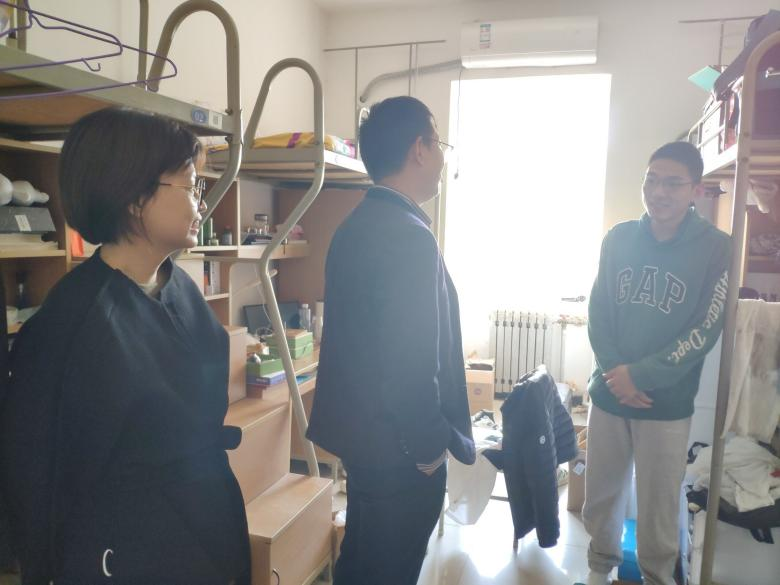 此次检查的主要内容为宿舍卫生、是否存在饲养宠物、乱扯电线、违规电器等问题。万海东副书记强调:同学们一定要提高安全用电意识,严禁使用违规电器,并提醒同学们要提高防患意识,切不可粗心大意。此外,万海东副书记还询问了学生们的生活状态、舍友关系、作息情况,鼓励同学们养成健康良好的生活习惯,积极建设友好和谐的寝室氛围,在生活中要互帮互助、共同进步。