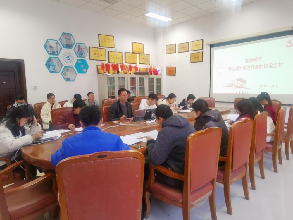 12月1日,在计算机学院130会议室,计算机学院党委副书记万海东讲授了“廉洁诚信——努力成为德才兼备的栋梁之材”主题党课。学院党委组织员李霞、辅导员高云和全体学生党支部书记参加了本次廉洁诚信教育主题党课。
