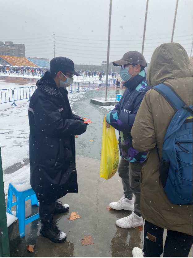 疫情期间,医护人员和工作人员为防疫做出了重大贡献。为了表达计算机学子对他们的感谢,计算机学院19级学生党支部组成志愿者团队,为在风雪中坚守岗位的志愿者、医护人员以及工作人员送上御寒物资。以一颗颗感恩的心感谢全体捍卫校园安全的医护人员和全体工作人员。在大雪纷飞之中给西工大校园再次添加了一些温暖。相信在众人共同努力之下,我们一定会安全地度过这个寒冬。