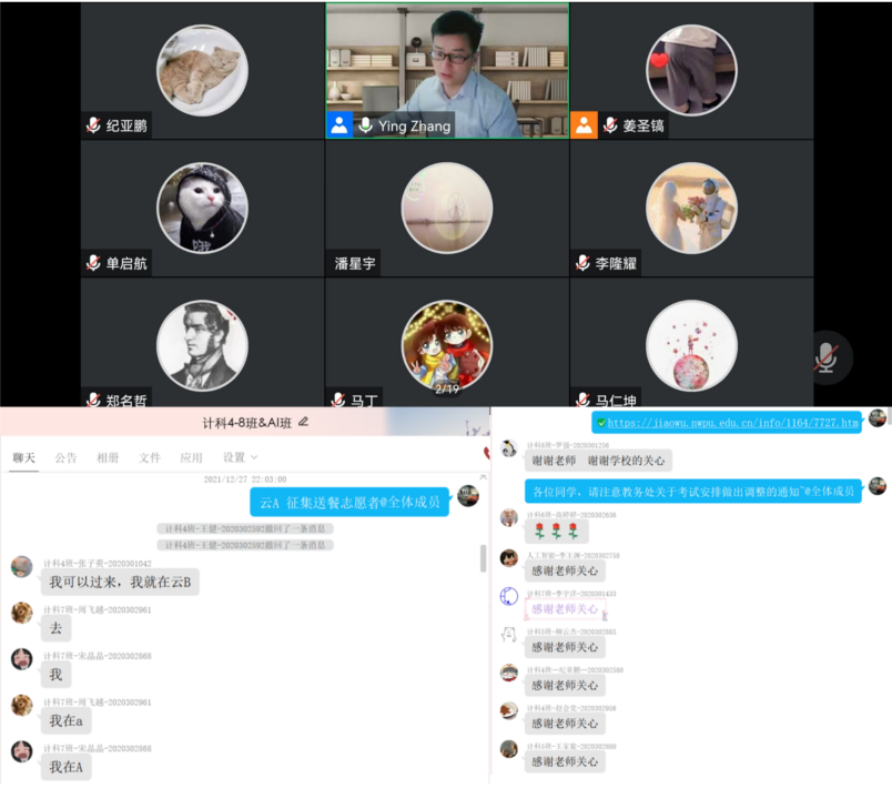 自疫情暴发后,计算机学院2020级辅导员张营立即召开线上会议,向同学们强调疫情的严峻性,提醒同学们提高自我防护意识,告诫同学们“非必要不外出”、公共场所佩戴口罩、尽量不去人流密集区、勤洗手、注意个人卫生等事项。同时,张营老师提醒同学们不要恐慌,学校有足够的物资储备,能够完全满足同学们的正常学习和生活。此外,张营老师实时关注同学们的课程考试调整安排,及时通知到每一位学生。