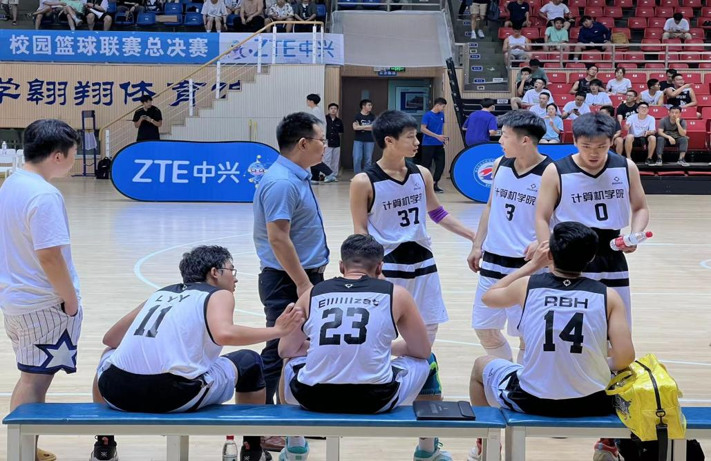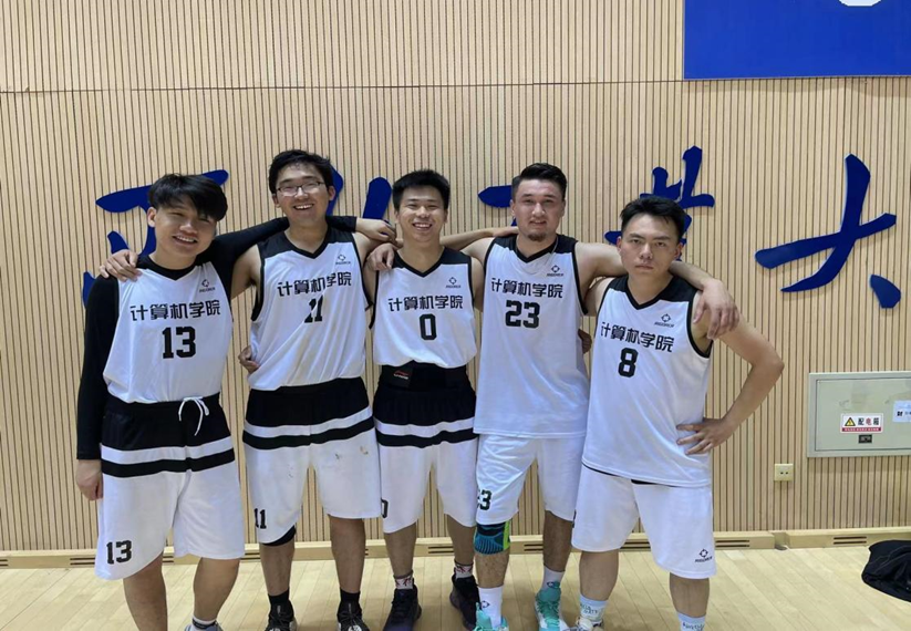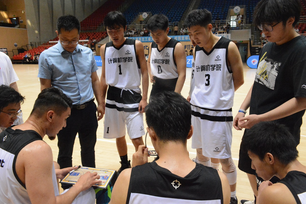 中场休息时,计算机学院党委副书记万海东亲自到场边给队员们打气助威,极大鼓舞了我院队员士气。艾力扎提对球队的战术进行了调整。此后,双方都加强了防守强度,场面十分胶着。计算机学院全体队员都拼尽全力,展示出自己的实力,将比分追近。最后一节,计算机学院在比分落后情况下,叶尔那尔决定单挑艾力扎提。面对艾力扎提的强力防守,首先打进两分,艾力扎提也做出回应,运球过半场后示意拉开单打叶尔那尔,同样两分打进,叶尔那尔在下一回合时没能打进,而艾力扎提则是远投三分,空心入网。最终计算机学院以39:45遗憾败北,终获第四。