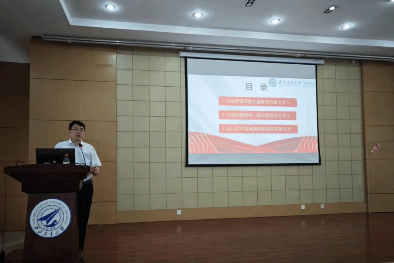 李春科从深刻理解开展主题教育的重大意义、深刻把握星空体育官网登录平台一流大学建设总要求、践行实干担当推动学院高质量发展三个方面展开论述。一是通过深入阐述开展主题教育的时代背景、重大意义和总要求,习近平新时代中国特色社会主义思想的科学体系、丰富内涵和精髓要义,学院在推动学院主题教育走深走实方面的具体行动等,带领师生在学思践悟中站稳政治立场、坚定政治方向,鼓励师生争做“四有”好老师和有理想、有本领、有担当的新时代青年。二是围绕习近平总书记“要把高等教育作为建设教育强国的龙头”的要求,传达最近学校党委书记李言荣主题教育专题党课精神,深刻把握学校“双一流”建设和高质量内涵式发展的总要求。三是立足于学院实际,通过对标国内外一流高校,分析学院在发展中存在的问题与差距,坚持问题导向、目标导向,梳理下一步的发展思路和重要举措,以建设一流学院、一流学科为目标,奋力谱写计算机学院建设新篇章。
