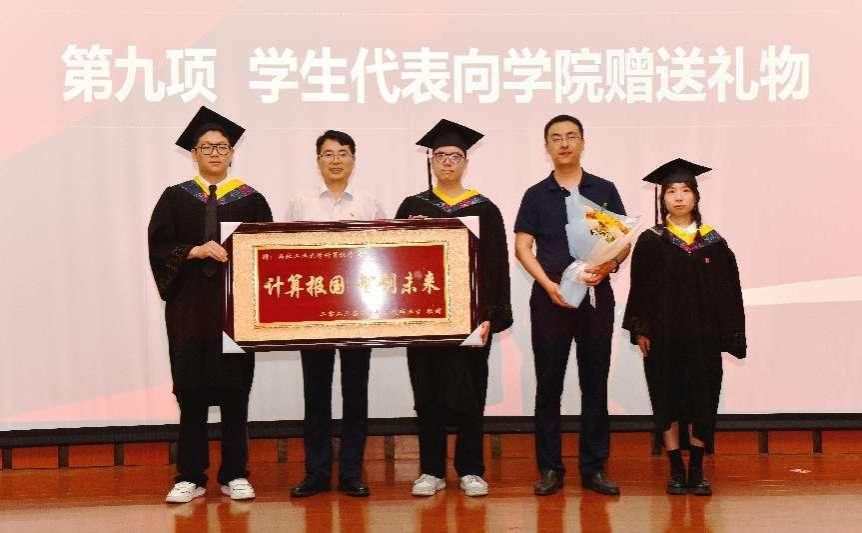 学生代表向学院赠送礼物,感谢学院提供了学习生活上的关怀和帮助,为毕业生的成长提供了良好的平台。
