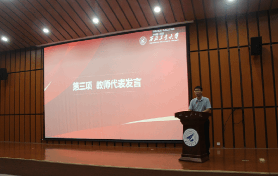 教师代表梁韵基总结了2023届在这四年来取得的突出成绩,表达了自己作为本届辅导员在这四年的感受,并对大家提出三点希望:希望大家不忘初心,不负青春,在奋斗中砥砺成长;敢为人先,自强自立,在实践中求是;饮水思源,不忘初心,以真情奉献社会。