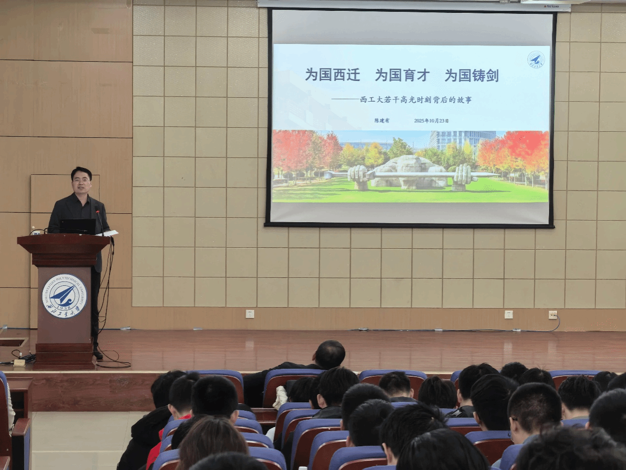 陈建有系统梳理了西工大人服务国家重大战略需求的辉煌历程,生动展现了学校扎根国防事业、践行“为党育英才、为国铸重器”使命担当的深厚底蕴。从抗战烽火中点亮救国理想的“古路坝灯火”,到国庆阅兵等重大任务里闪耀的“西工大身影”;从师昌绪、陈士橹、康继昌等先辈的开拓精神,到如今重大型号总师校友辈出的“西工大现象”,再到聚焦“总师型”人才培养的育人实践——每一段历程都将育人内核与校史校情深度交融。生动的讲述让在座各位同学对总师育人文化的历史和文化逻辑有了更加深刻的理解。