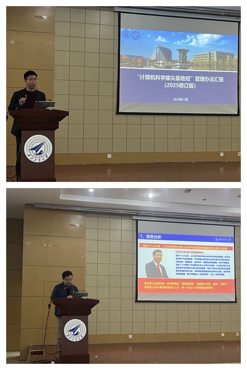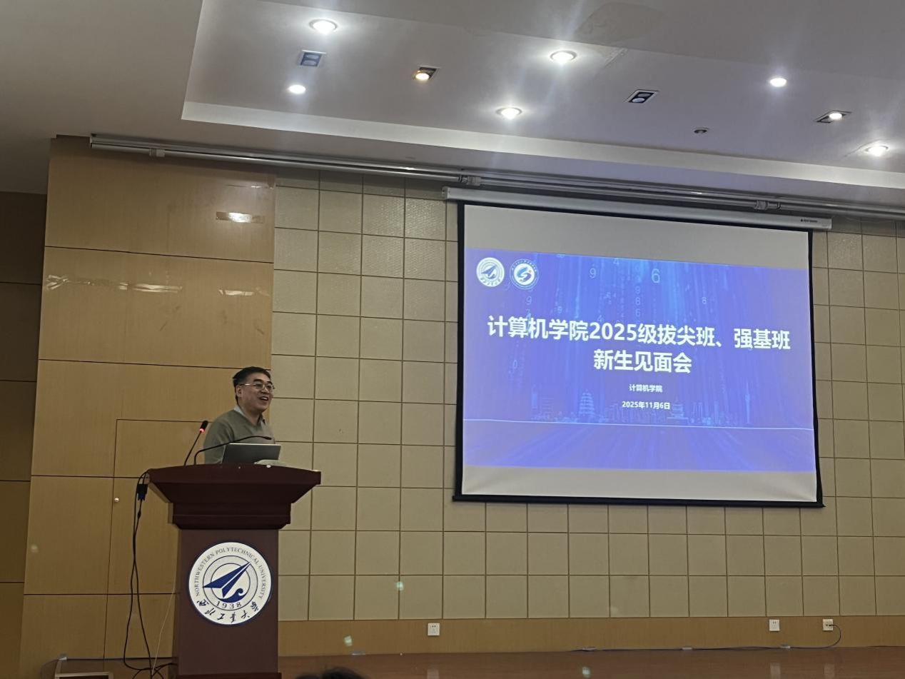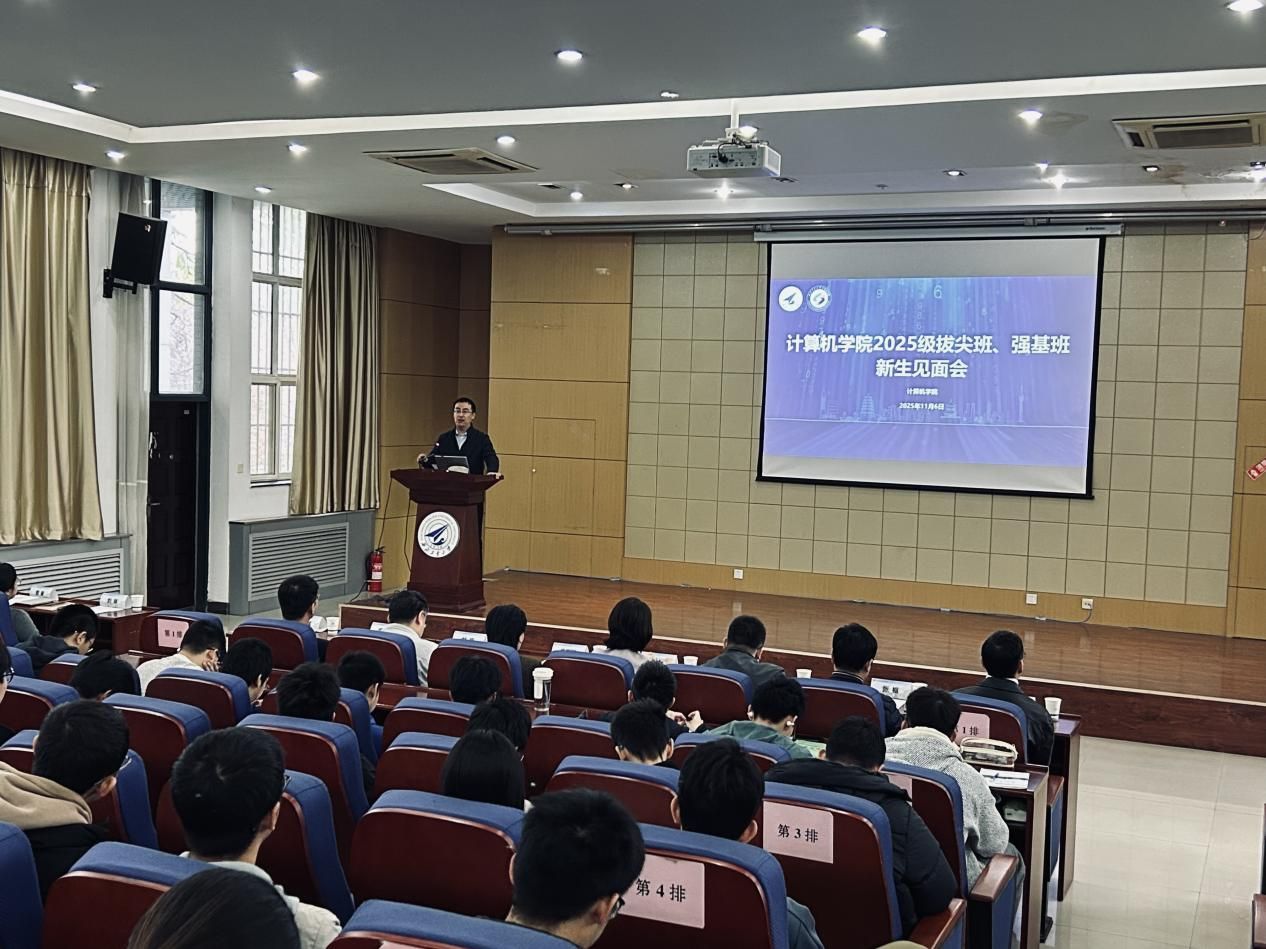 2025年11月6日下午,计算机学院2025级康继昌计算机科学拔尖班、信息与计算科学(智能科学与技术)强基班新生见面会在长安校区计算机学院二楼报告厅顺利举行。学院领导、班主任、优秀学生代表及全体拔尖班、强基班新生齐聚一堂,围绕拔尖创新人才培养、班级建设与发展规划展开深入交流。尚学群院长、赵媛媛副书记等莅临会议并讲话,会议由计算机学院副院长郭斌主持。