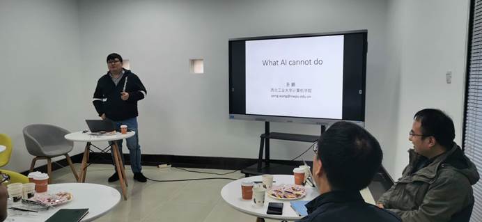 10月12日下午,计算机学院组织召开了第九期“01学术沙龙”活动,本期沙龙主题为“What AI cannot do”,主讲人是王鹏教授,活动由彭佳杰副教授主持。继上期沙龙活动学生积极发表见解后,本期沙龙活动继续面向“康继昌智能系统班”开放,除10位教师参与外,有6位本科生报名参加。