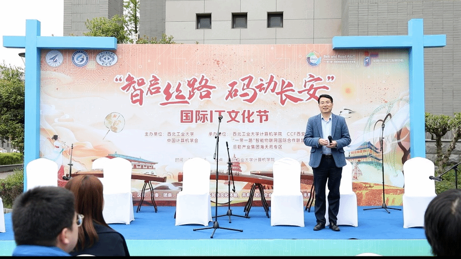 2023年4月5日,由西北工业大学,中国计算机学会CCF主办,计算机学院, CCF西安,“一带一路”智能物联网国际合作联盟,后勤产业集团海天苑专区共同承办的全球IT胜任力发展中心启动仪式暨首届“智启丝路,码动长安”国际IT文化节在南山苑太白厅及计算机学院楼举办。